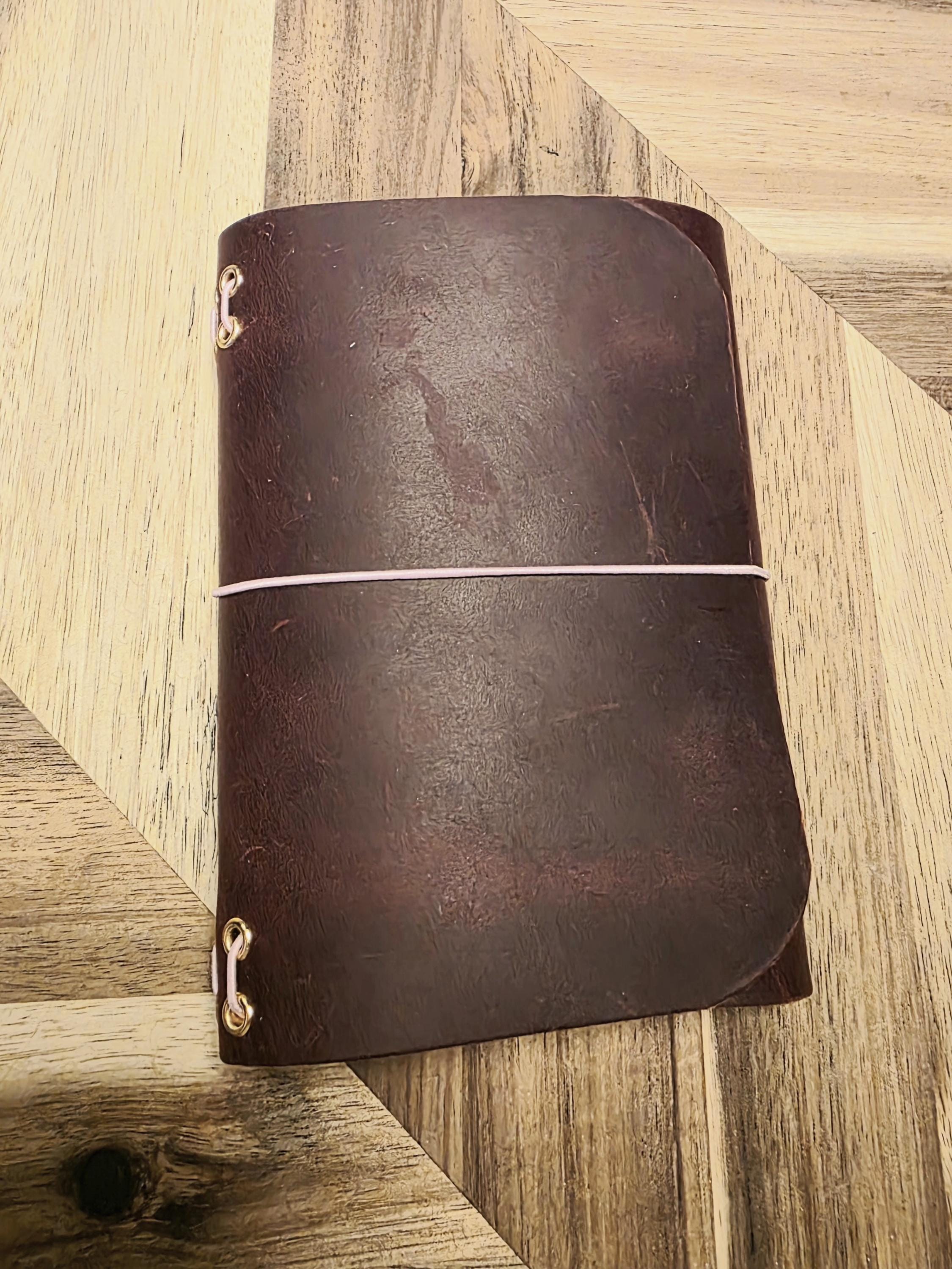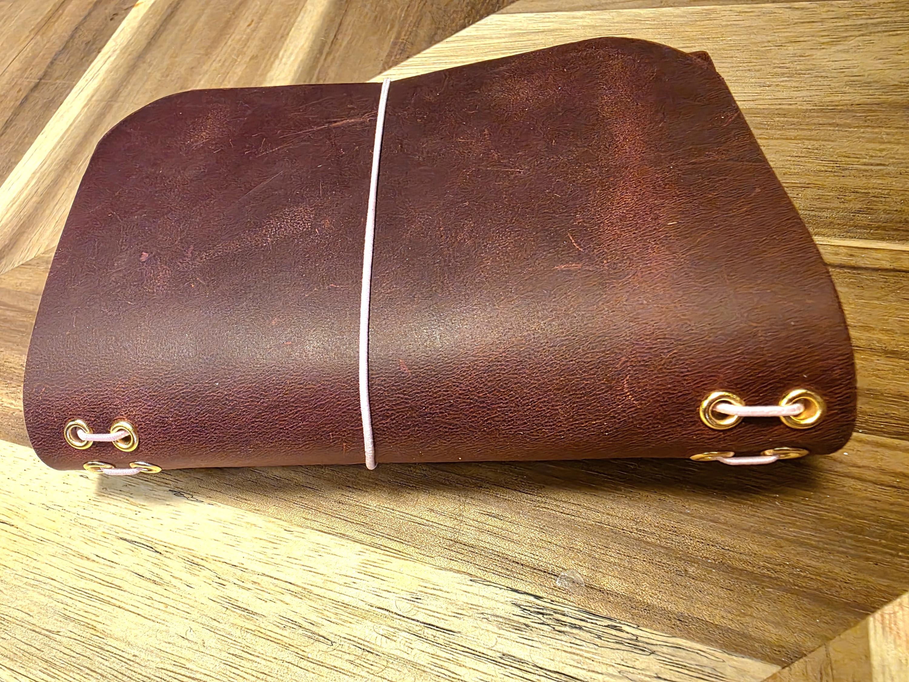 This beautiful deep red colored genuine thick leather small with pale pink cording will carry your thoughts, intentions, keepsakes and more. It is small in size measuring 5.5 x 4, perfect for your purse, carry on or just to keep at your desk.