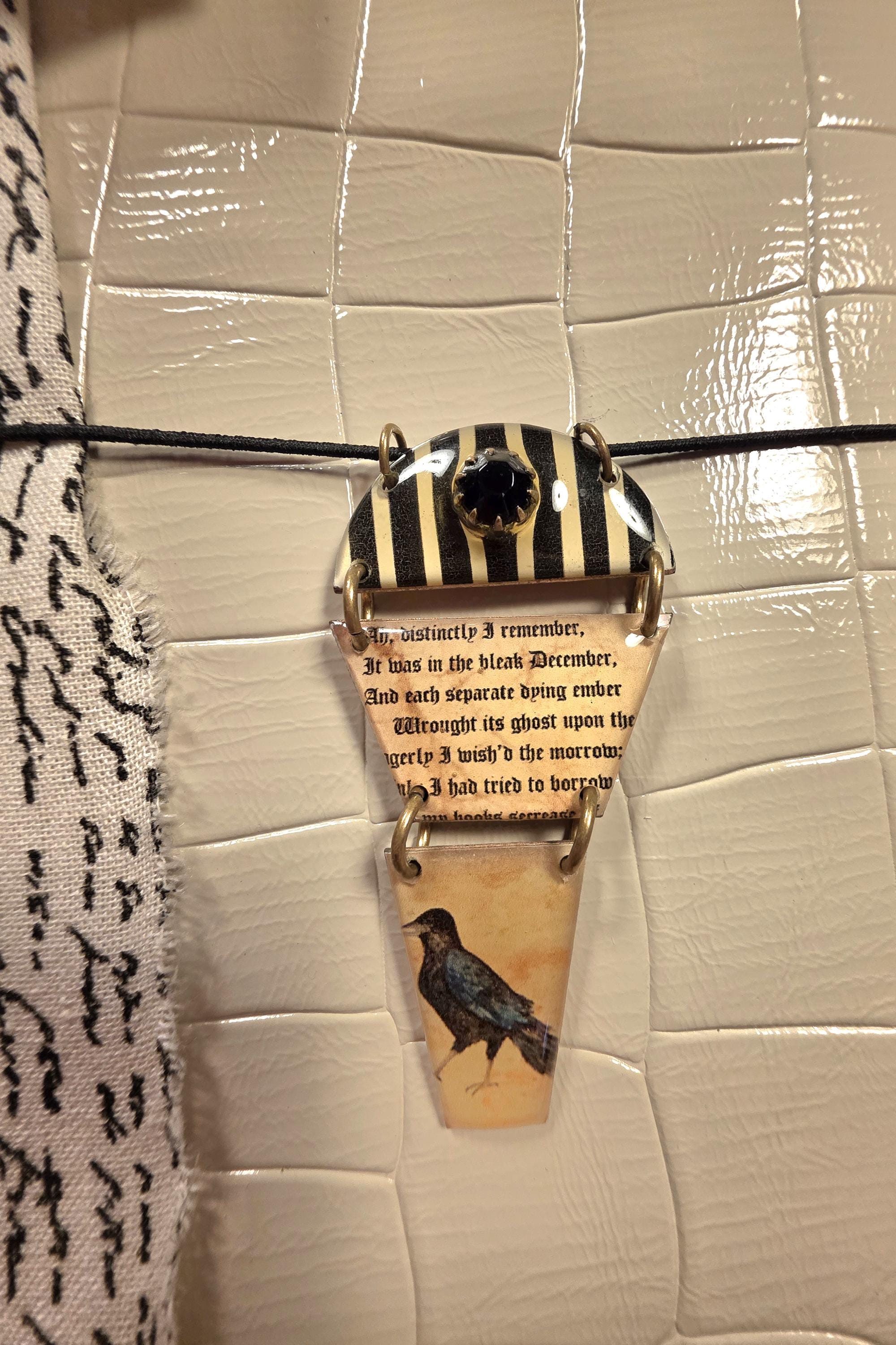 Meet Eliza! She is Edgar Allan Poe Inspired Cream textured leather journal cover with 2 lined notebook inserts. She comes fitted with a handcrafted Poe quoted epoxy art charm, black cording, brass grommets and a removable handwriting bow.